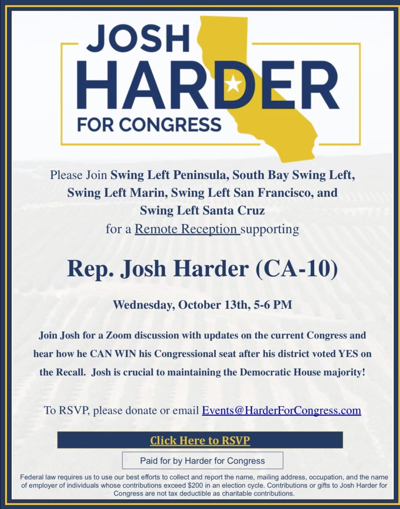 Join Josh for a Zoom discussion with updates on the current Congress and hear how he CAN WIN his Congressional seat after his district voted YES on the Recall. Josh is crucial to maintaining the Democratic House majority!