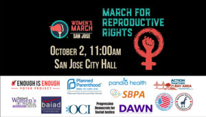 On October 2, along with organizations throughout the nation, we’re marching ahead of the Supreme Court reconvening on October 4. Women’s March San José along with Enough Is Enough Voter Project, Action Together Bay Area and Pandia Health are organizing this call to mobilize and defend our reproductive rights in San José.