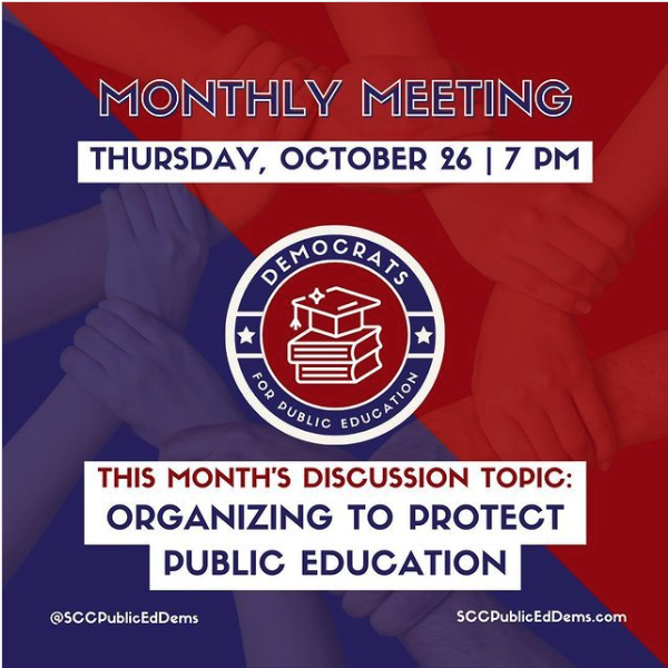 Please help share our organizing effort to other Public Education Supporters. We can become better organized with more supp Attached is the digital flyer (below) and people can RSVP with our webpage: www.sccpubliceddems.com/events