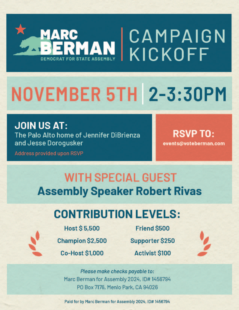 Please reply, or email events@voteberman.com if you are interested in being on the host committee, or click here to RSVP online. If you want to attend but are unable to contribute at this time, you are more than welcome. Just send an email to let me know.