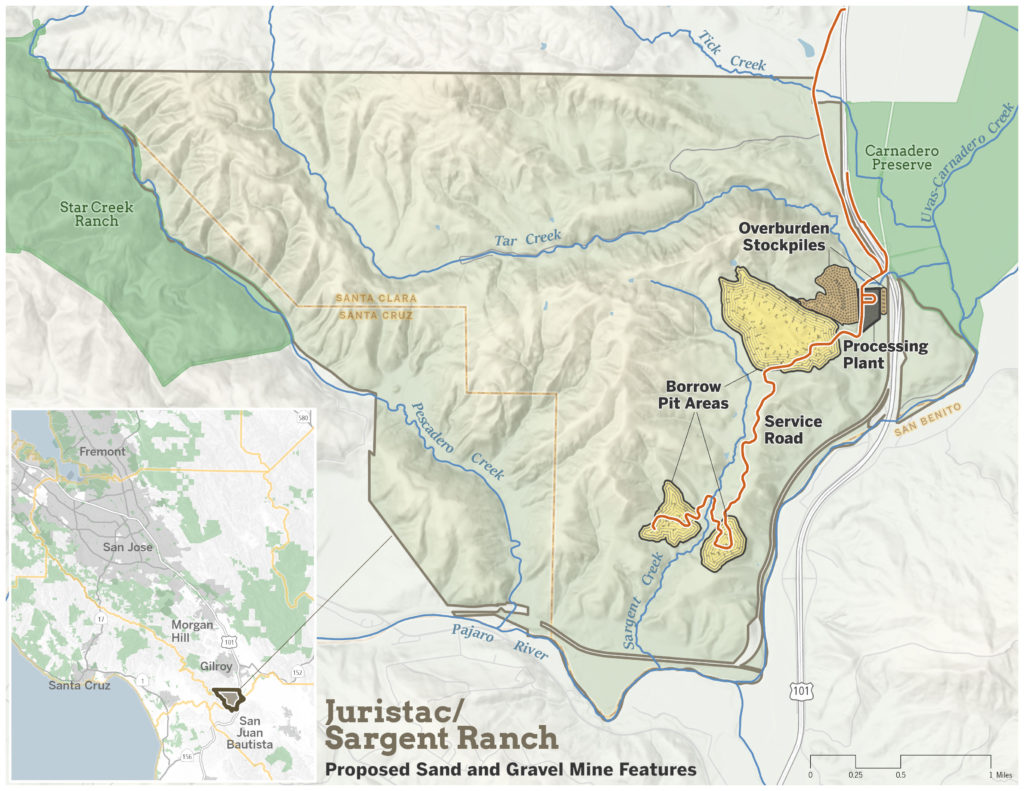 The proposed open-pit mine (Sargent Quarry) would remove four sacred hills and over 40 million tons of sand and gravel from the land. The draft environmental impact report for the proposed mine will be released shortly. Once public comments are submitted and considered, the Santa Clara County Planning Department will make a decision as to whether to approve or deny the permit for Sargent Quarry. If a permit is approved by the Planning Department, it will be appealed to the Santa Clara County Board of Supervisors to decide if the permit will be granted.